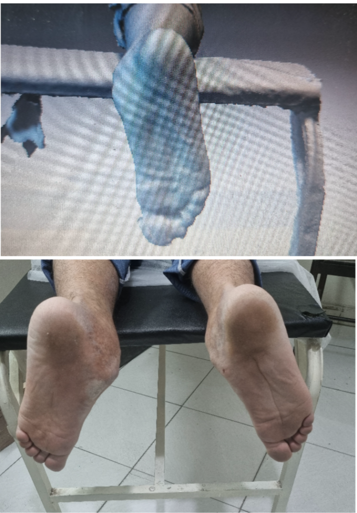 در تصویر زیل نمونه ای از صافی شدید کف پا و تصویر اسکن سه بعدی از نما کف پا را مشاهده می کنید